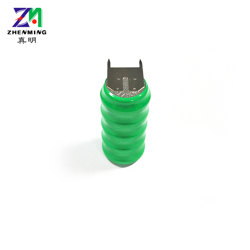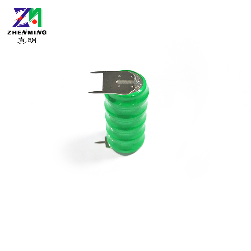 80H 6V帶腳鎳氫扣式電池是由5個80H扣式鎳氫電池層疊串聯組合而成的柱形鎳氫充電電池,其電壓為6V,容量80mAh,可根據客戶要求提供個性化定制加工。