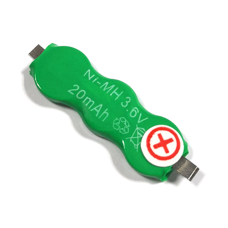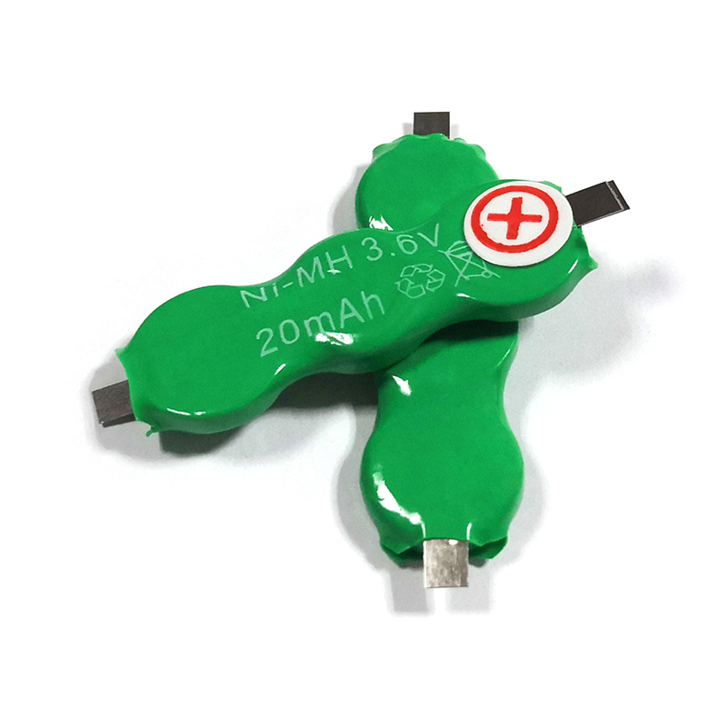 20H 3.6V帶焊片鎳氫扣式電池是由3個20H扣式鎳氫電池并排串聯組合而成的長條形鎳?氫充電電池,其電壓為3.6V,容量20mAh,可根據客戶要求提供個性化定制加工。