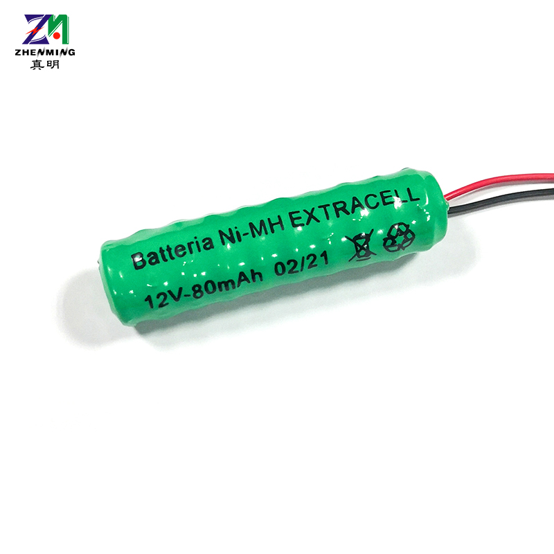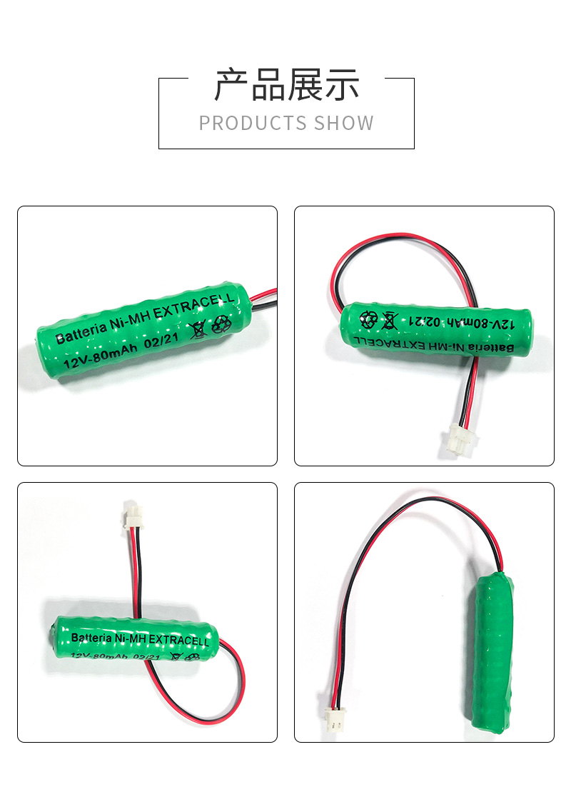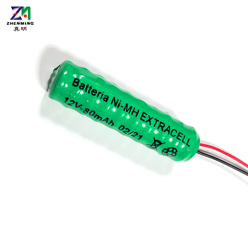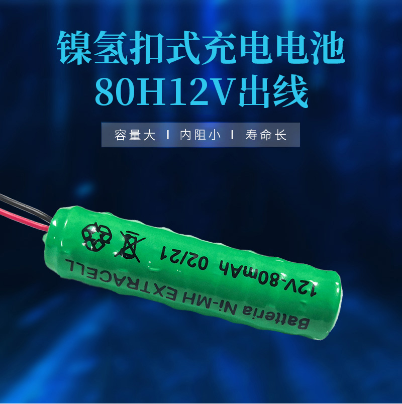 80H 12V帶腳鎳氫扣式電池是由10個80H扣式鎳氫電池層疊串聯組合而成的柱形 鎳氫充電電池,其電壓為10V,容量80mAh,可根據客戶要求提供個性化定制加工。